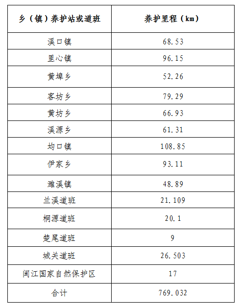 福建闽江源旅游集团有限公司、各乡(镇)农村公路养护管理站、养护道班: