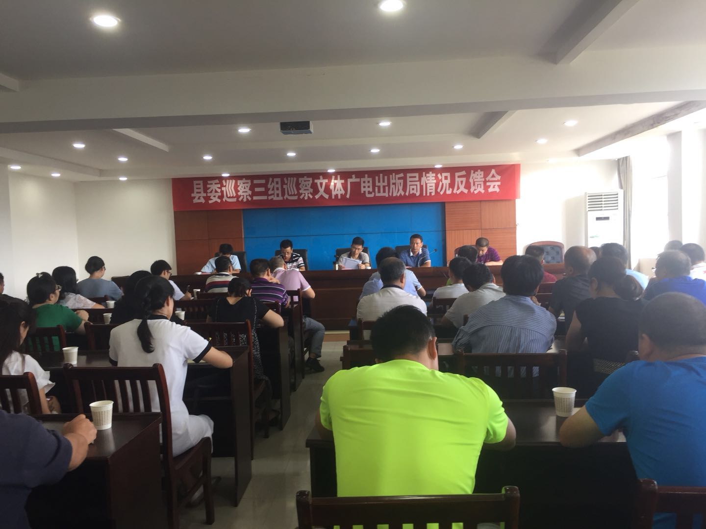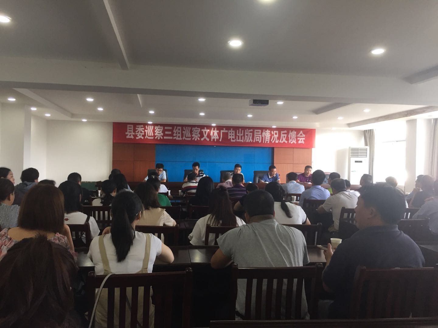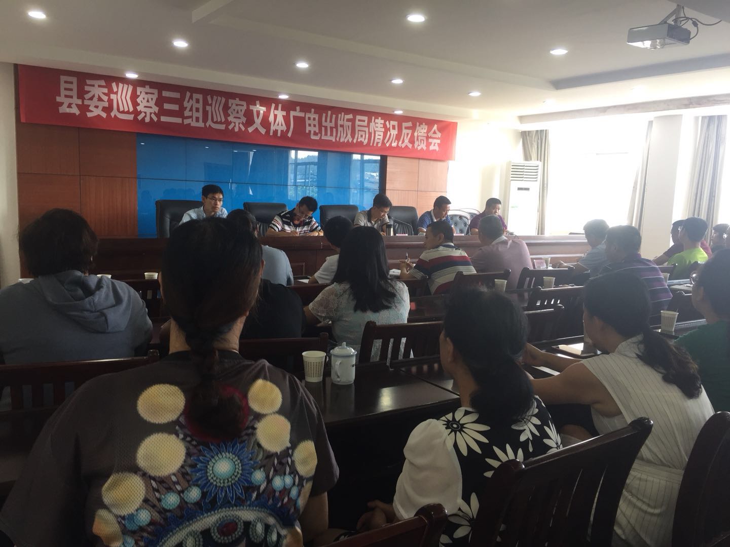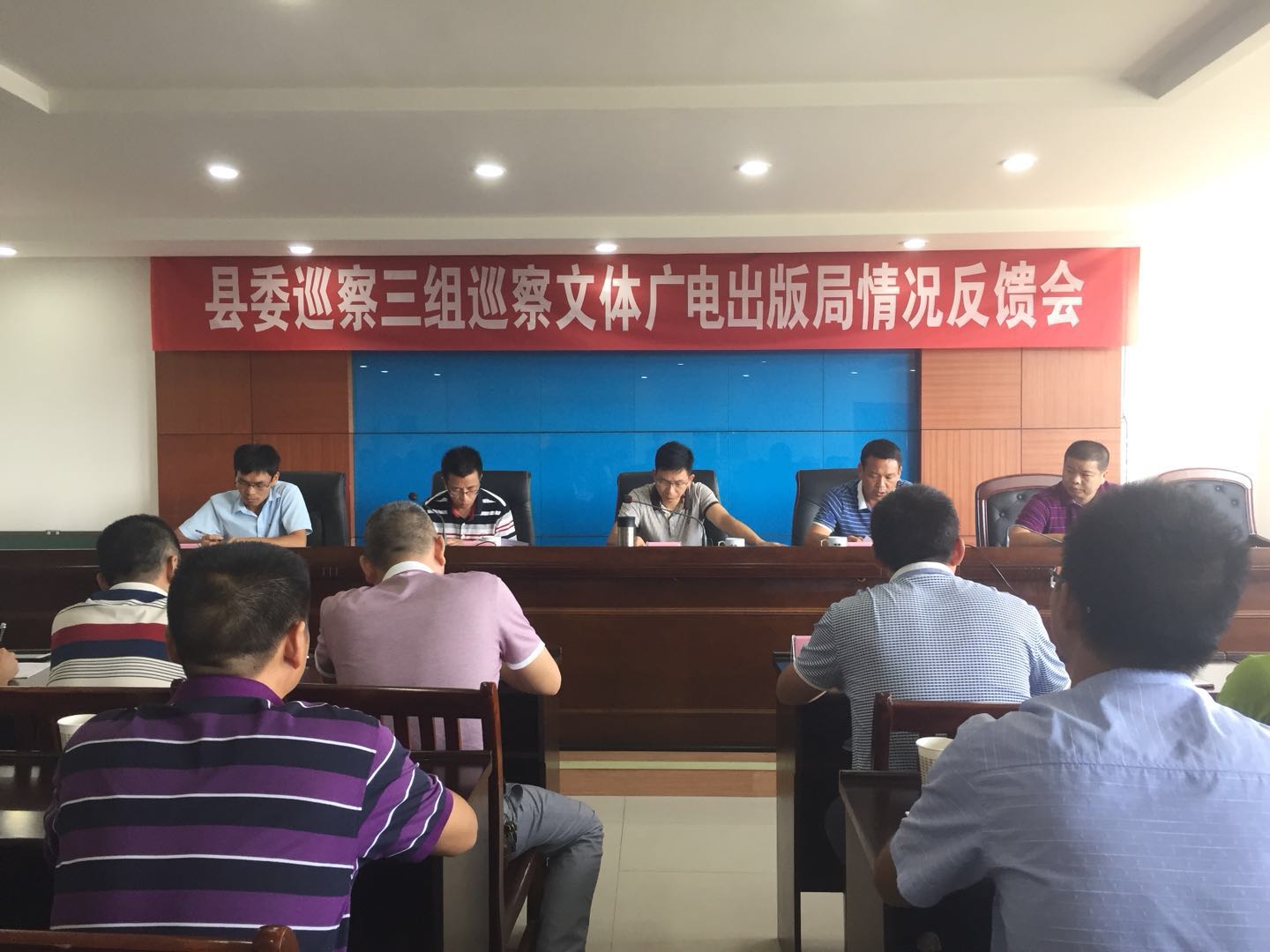 县纪委驻县委宣传部纪检组、县委巡察三组刘沐良组长反馈巡察情况并指出四点意见建议:一是要高度重视局机关和下属馆(队)存在的廉洁风险,切实担负起全面从严治党主体责任。二是要认真贯彻落实《准则》、《条例》,对党的领导的弱化、党的建设缺失和下属馆(队)监管不够到位等问题开展专项整治。三是要坚决贯彻落实中央八项规定精神,加强党员干部驾驭监督管理,抓早抓小,切实在坚持中深化、在深化中提升。四是要结合巡察反馈指出的问题,召开专题民主生活会进行深刻剖析、对照检查,研究制定整改方案。