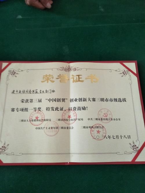 7月18日,三明市人力和社会保障局、三明市科技与知识产权局、中共三明市委台湾工作办公室、中共共产主义青年团三明市委员会、三明市残疾人联合会五部门在三明市艺术馆召开表彰大会,我县四级肢体残疾人谢洪辉创办的《绿园春果蔬专业合作社》荣获第三届“中国创翼”创业创新大赛三明市市级选拔赛专项组一等奖荣誉称号。