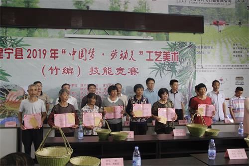 为弘扬工匠精神及中国传统文化,进一步传承和发扬竹编工艺,助推我县竹编产业的振兴。由县总工会、县文旅局、县二轻联社、县残联联合举办,县工艺美术协会承办的建宁县2019年“中国梦·劳动美”工艺美术(竹编)技能竞赛活动于6月25日上午8点30分,在枫元闽赣农机植保服务中心举行。来自全县的22名竹编手工艺人参加了比赛。本次竞赛要求选手在规定的时间内现场编织设定的竹编工艺品两件(小竹篮子、竹编果盘或竹篓,任选两件现场编织)。