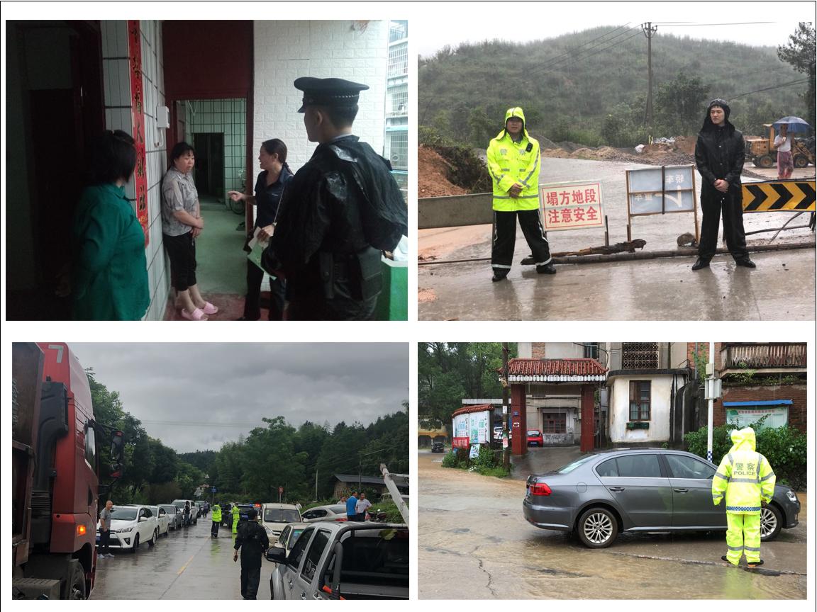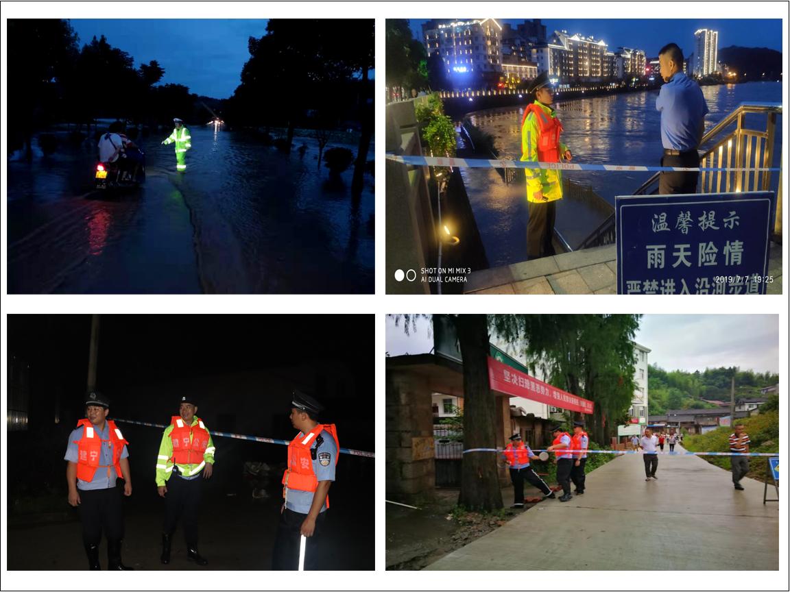 里心镇此次降水量最大,镇区街道被淹,部分群众家中进水,民警冒着大雨,淌着泥水,紧急转移受灾群众,并通过喊话器,排查通知低洼地段群众请迅速往高处转移,并挨家挨户走访,救助受灾群众,帮助群众转移财产物资,保护人民群众的生命财产安全。客坊派出所民警在巡逻过程中发现一名独自行走在路上的八旬老人,道路湿滑,老人行走不便,加之前方道路可能存在各种险情,老人独自前行安全难以保障。为稳妥起见,民警将老人送到附近村部先临时安顿,随后又急忙赶赴各涉险路段开展巡查,在巡逻工作结束后,民警又第一时间赶回村部,将老人安全护送回家。在建宁县城区,一居民区发生山体滑坡,城关派出所民警紧急出动,配合镇、社区工作人员,逐人逐户开展工作,将附近居民楼里的住户全部转移到安置点,并在灾害点设置警示标志,禁止行人及车辆靠近。城区沿河步道被淹没,民警沿着河畔加强路面巡逻,劝离群众并拉起警戒带,禁止一切人员进入步道,因洪峰在晚间19至22时之间通过,为避免发生意外,民警在重点地带坚守岗位,全面做好疏散、警戒、救援准备,直至23时洪峰过后才撤离。此外,辖区多个乡镇部分路段被洪水淹没,车辆无法正常通行,交警大队、各派出所民警加强临水、临崖、易塌方、易积水路段、桥梁和涵洞等事故多发地段的巡逻排查,第一时间在危险路段禁行标志,实施交通管制,并在雨中坚守直至洪水退去,最大限度避免、减少人员伤亡和财产损失。