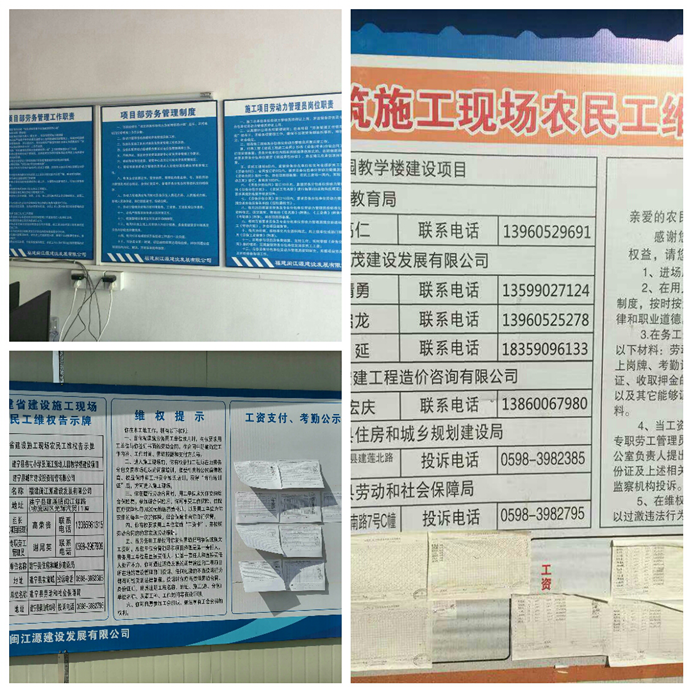 图二为现场劳务制度和维权告示牌检查。