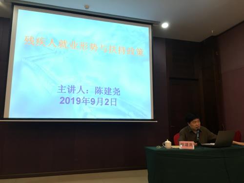 本次培训从残疾人就业与扶持政策、残疾人事业发展与成就、残疾人心理特点、残疾人法制教育讲座、动态更新应用等五个方面开展。