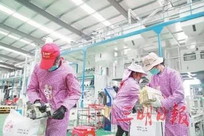 12月24日,建宁县禾丰种业股份有限公司加工中心内一派繁忙的景象,工人们正在为杂交水稻种子装袋,一批7.5万公斤的杂交水稻种子即将发往安徽、湖北、云南等地。