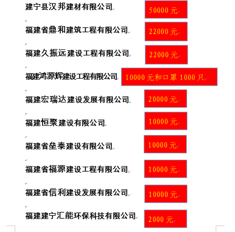 现在,国家出现了疫情,建宁县各级党组织已然全力投入新型冠状病毒感染肺炎疫情防控工作中,他们积极响应县住建局党委号召,踊跃捐款捐物。截止2月3日建宁县住建系统共10家企业已捐款捐物,合计收到捐款166000元,捐物(口罩)1000只,目前捐款捐物已全部上交至建宁县红十字会。