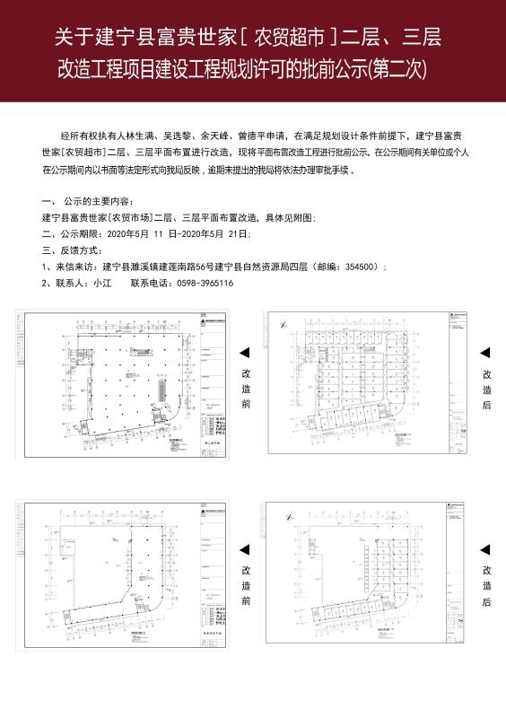 建宁县自然资源局关于建宁县富贵世家[农贸超市]二层、三层改造工程项目建设工程规划许可的批前公示(第二次)