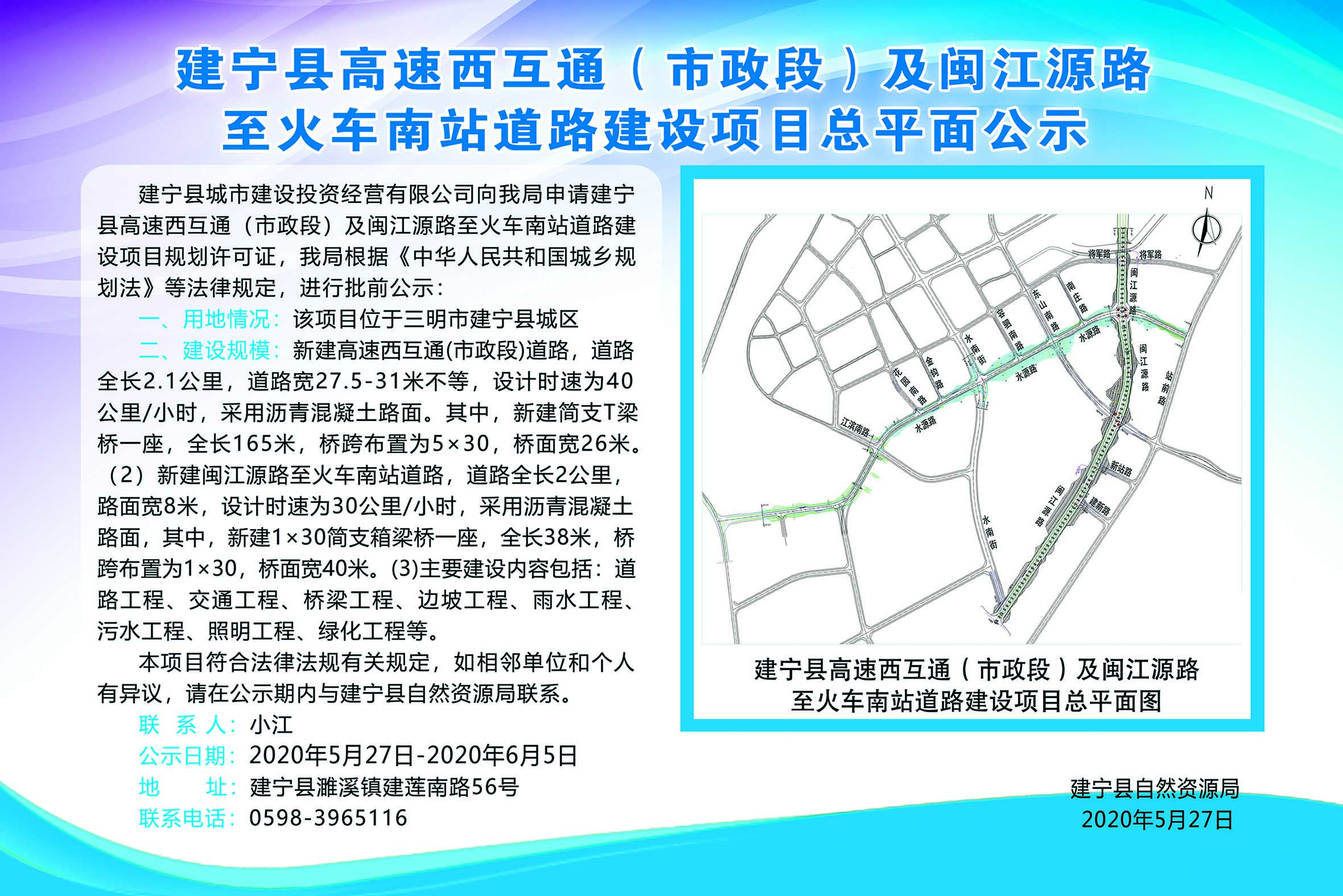 建宁县自然资源局关于建宁县高速西互通(市政段)及闽江源路至火车南站道路建设项目总平面公示