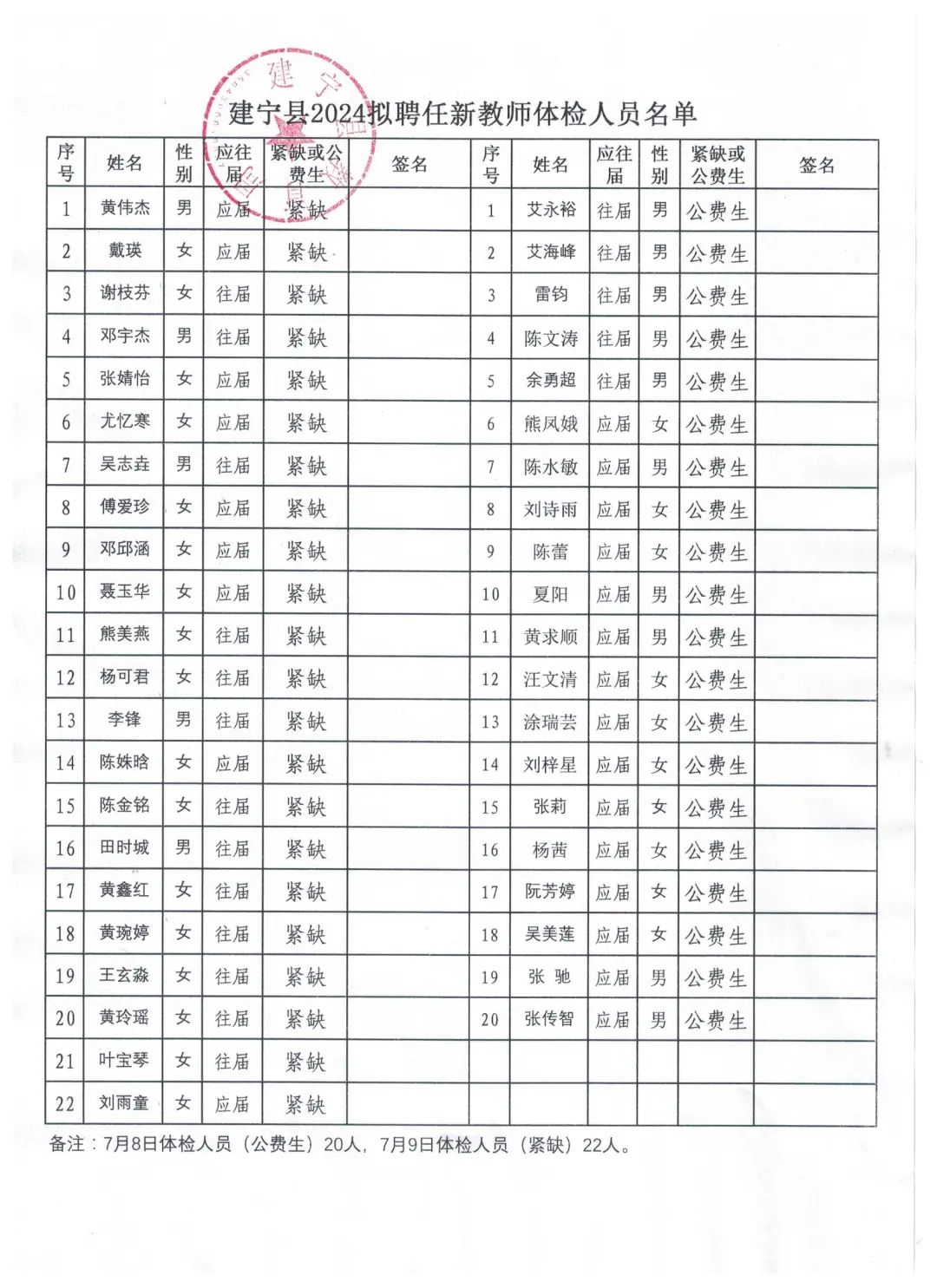 附件:建宁县2024年拟聘任新教师体检人员名单