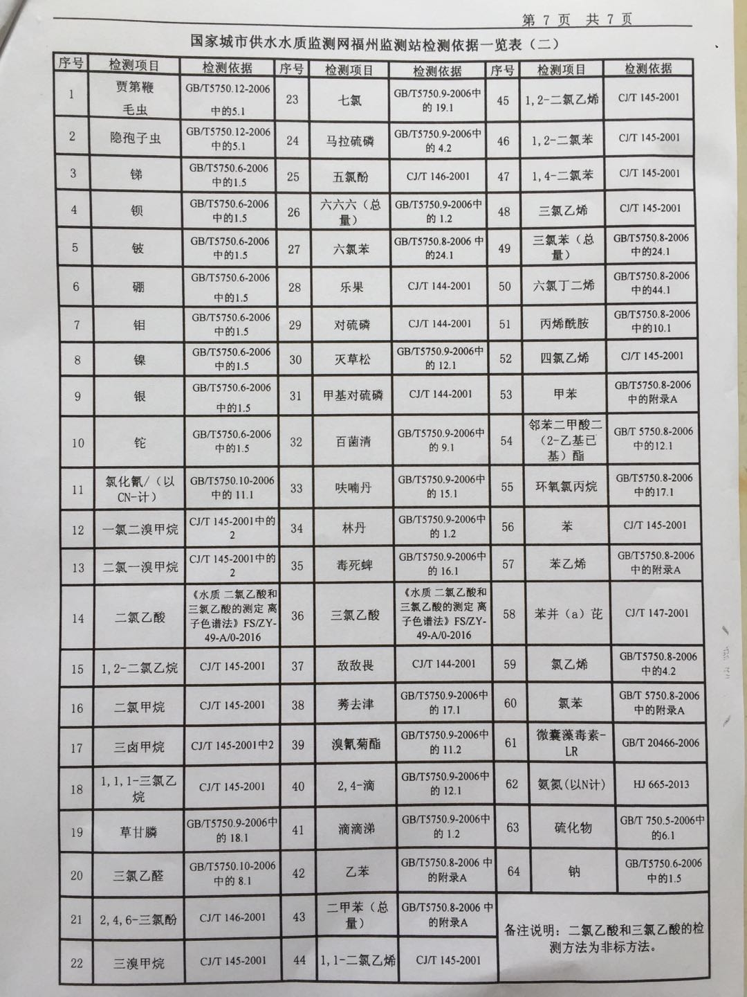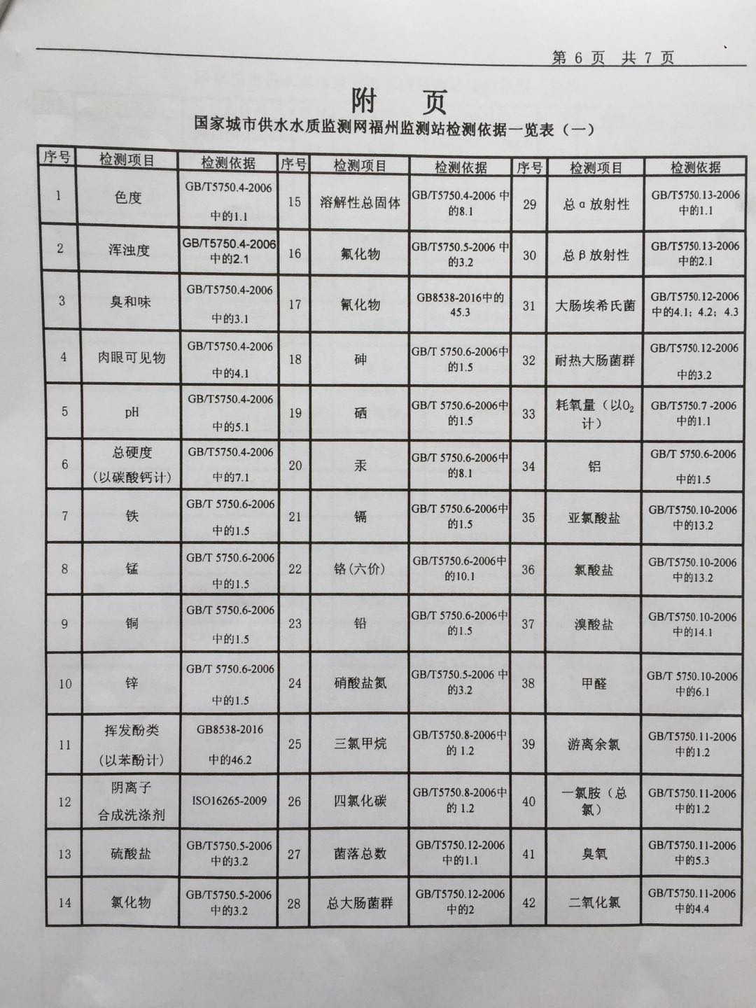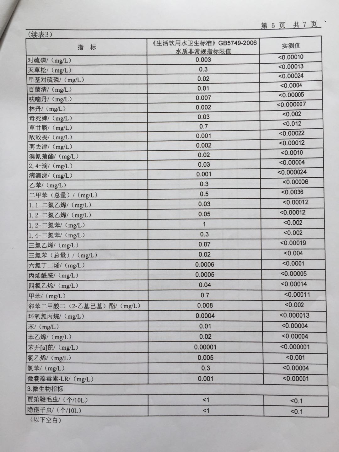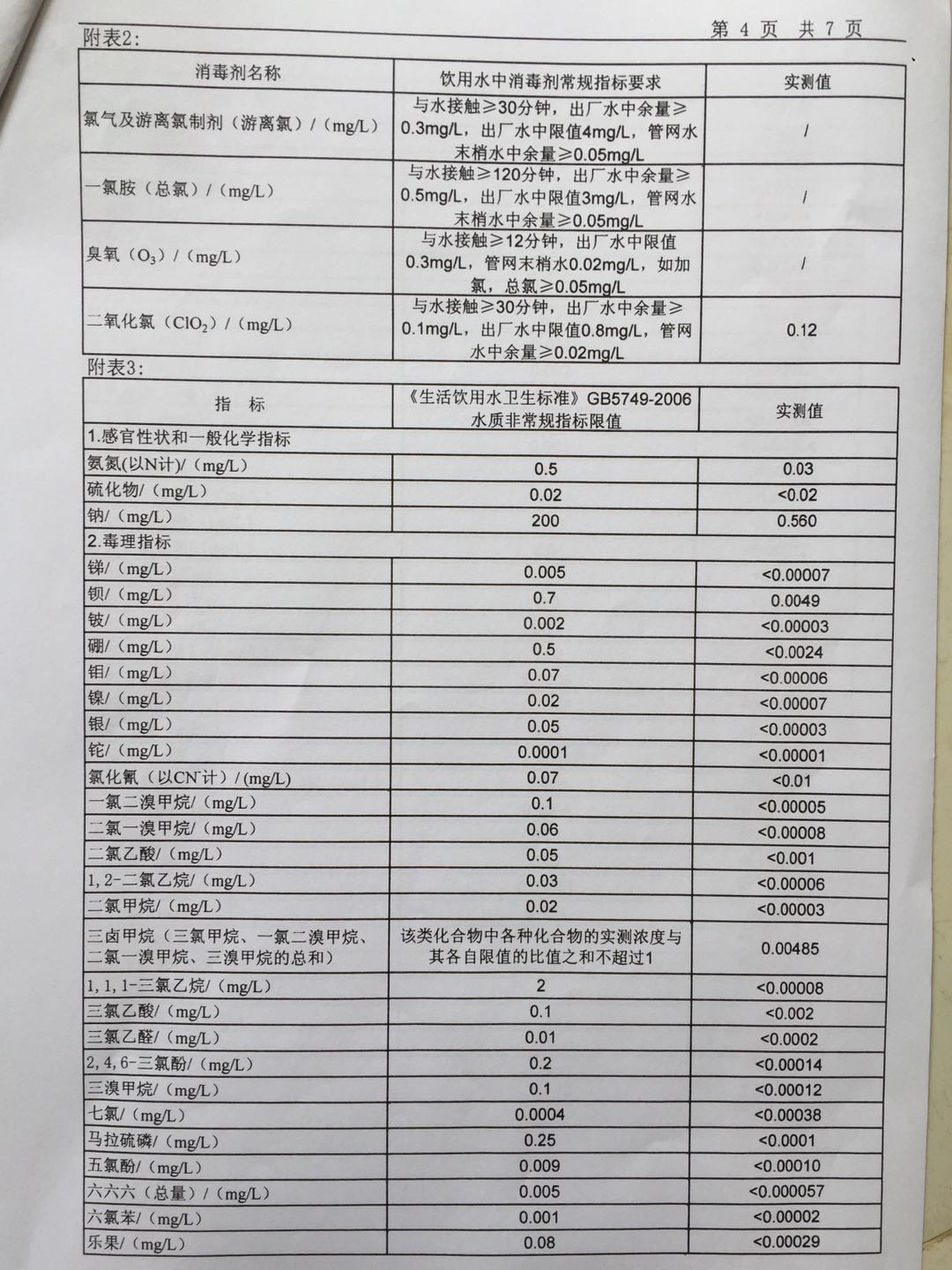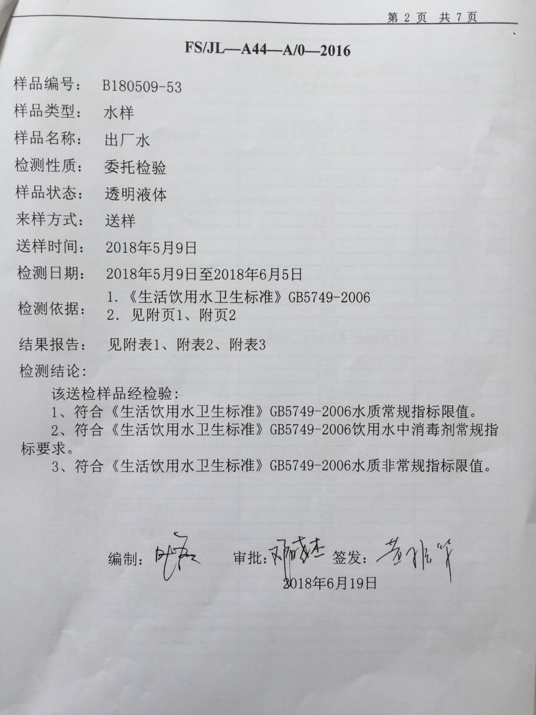 2019年6月份出厂水106项水质检测报告