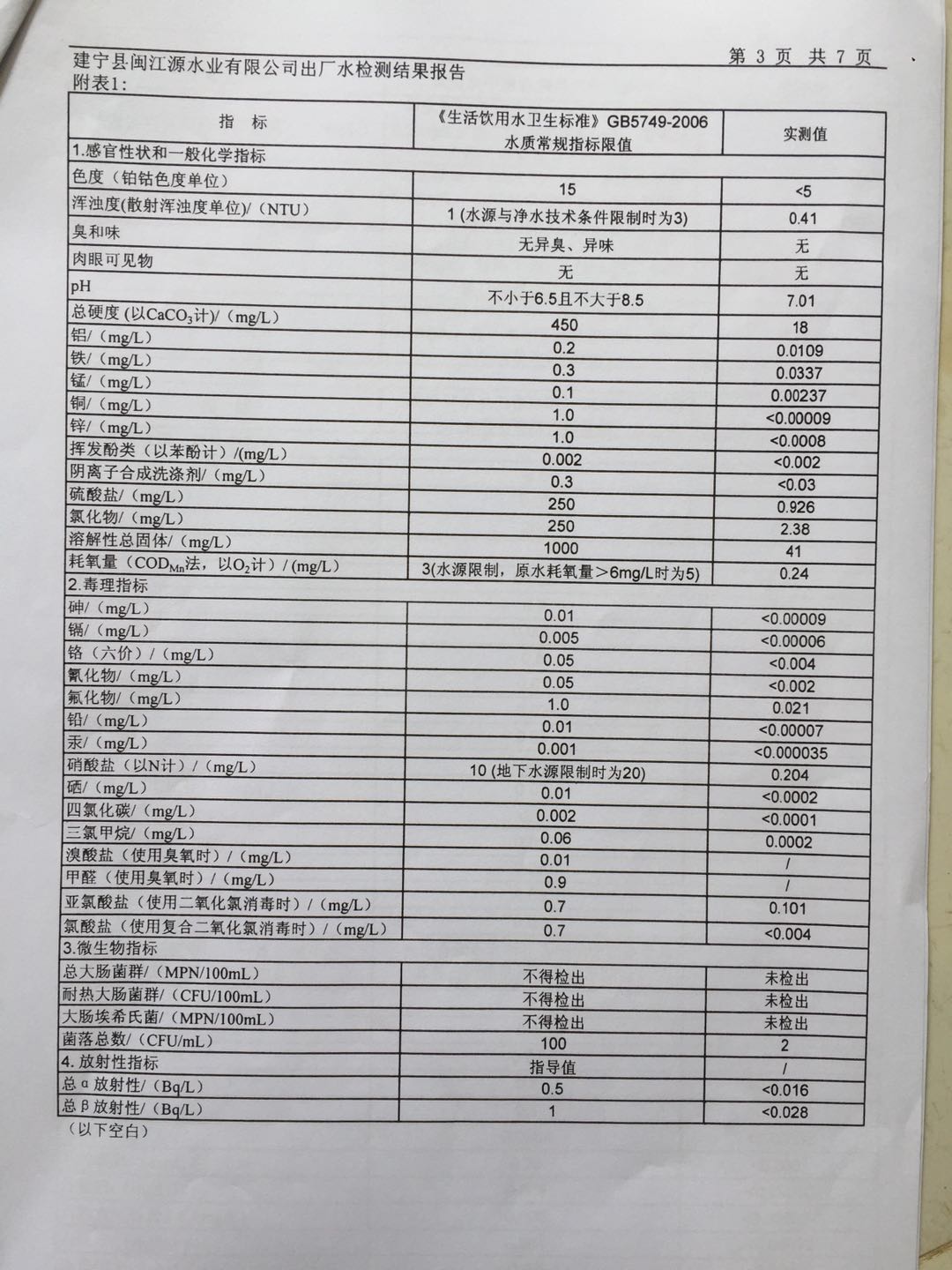 2018年出厂水106项水质检测报告