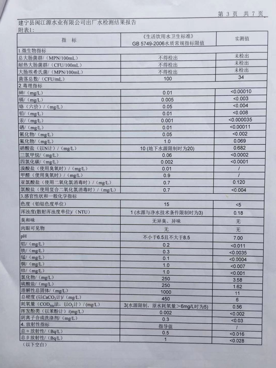2018年出厂水106项水质检测报告