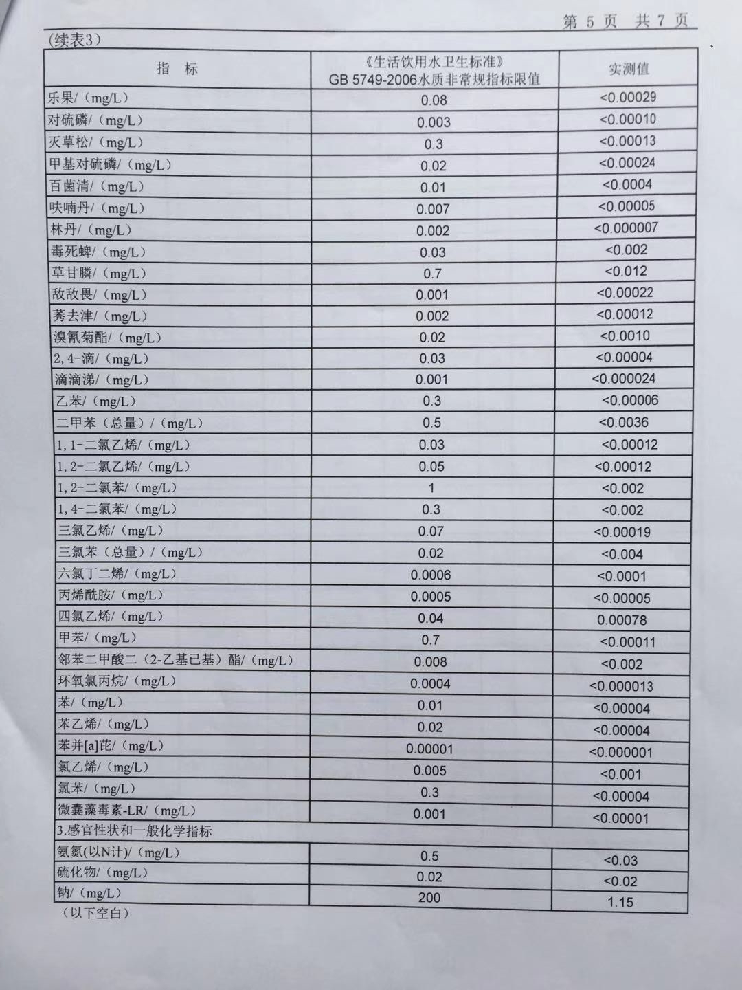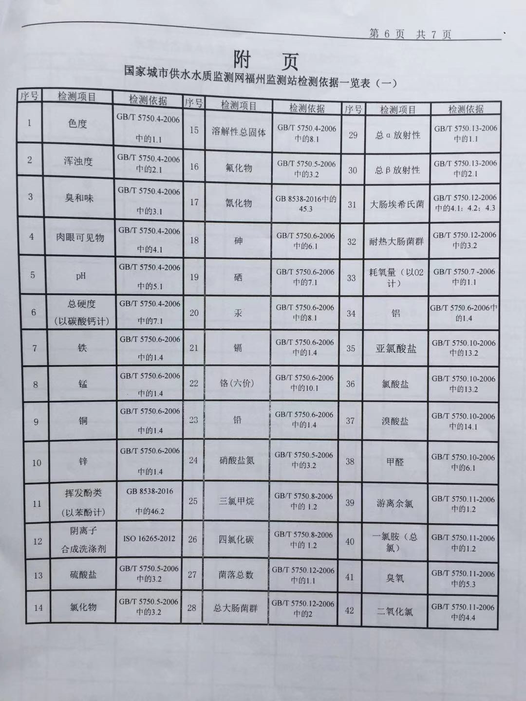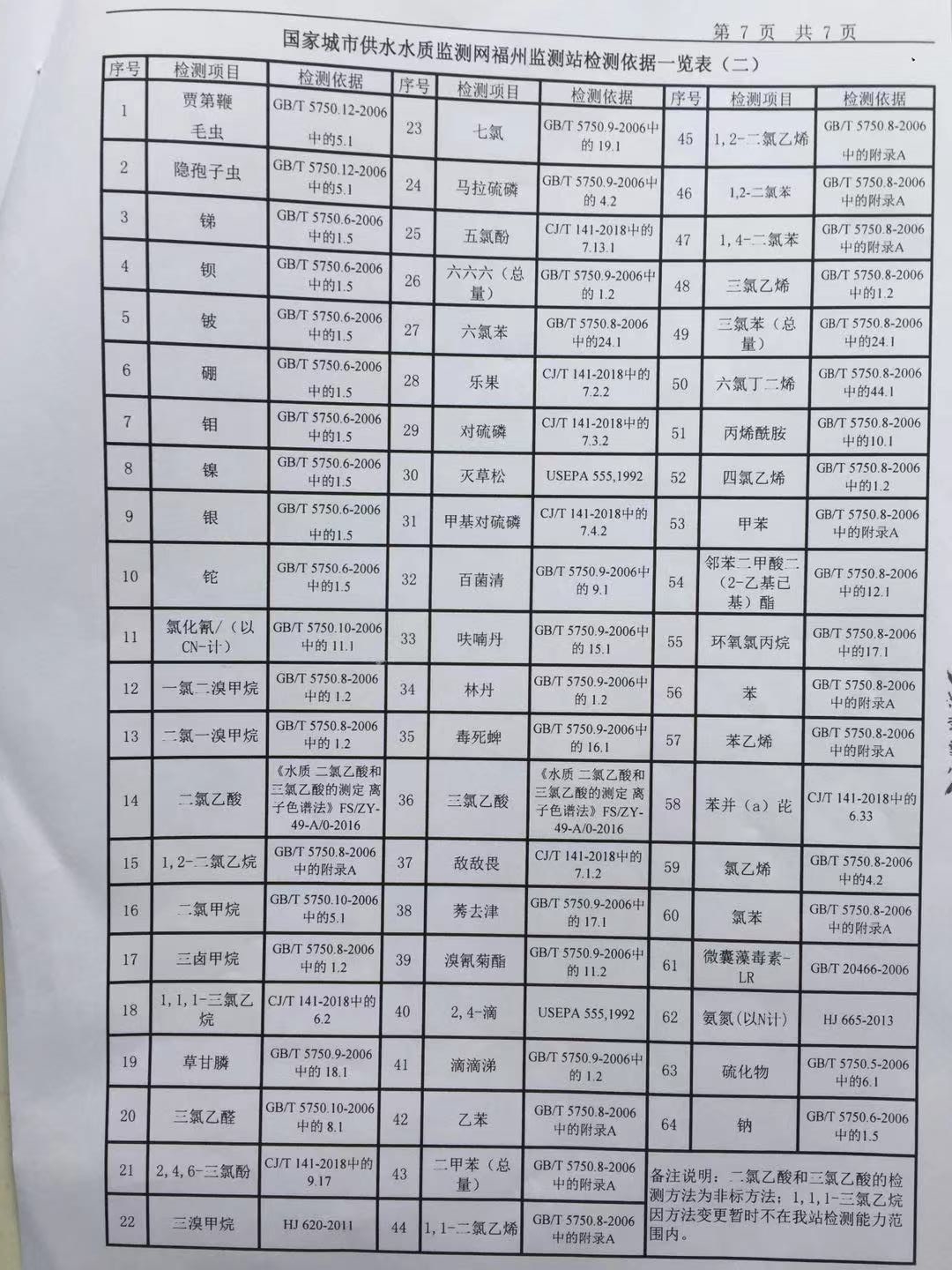 2019年6月份出厂水106项水质检测报告