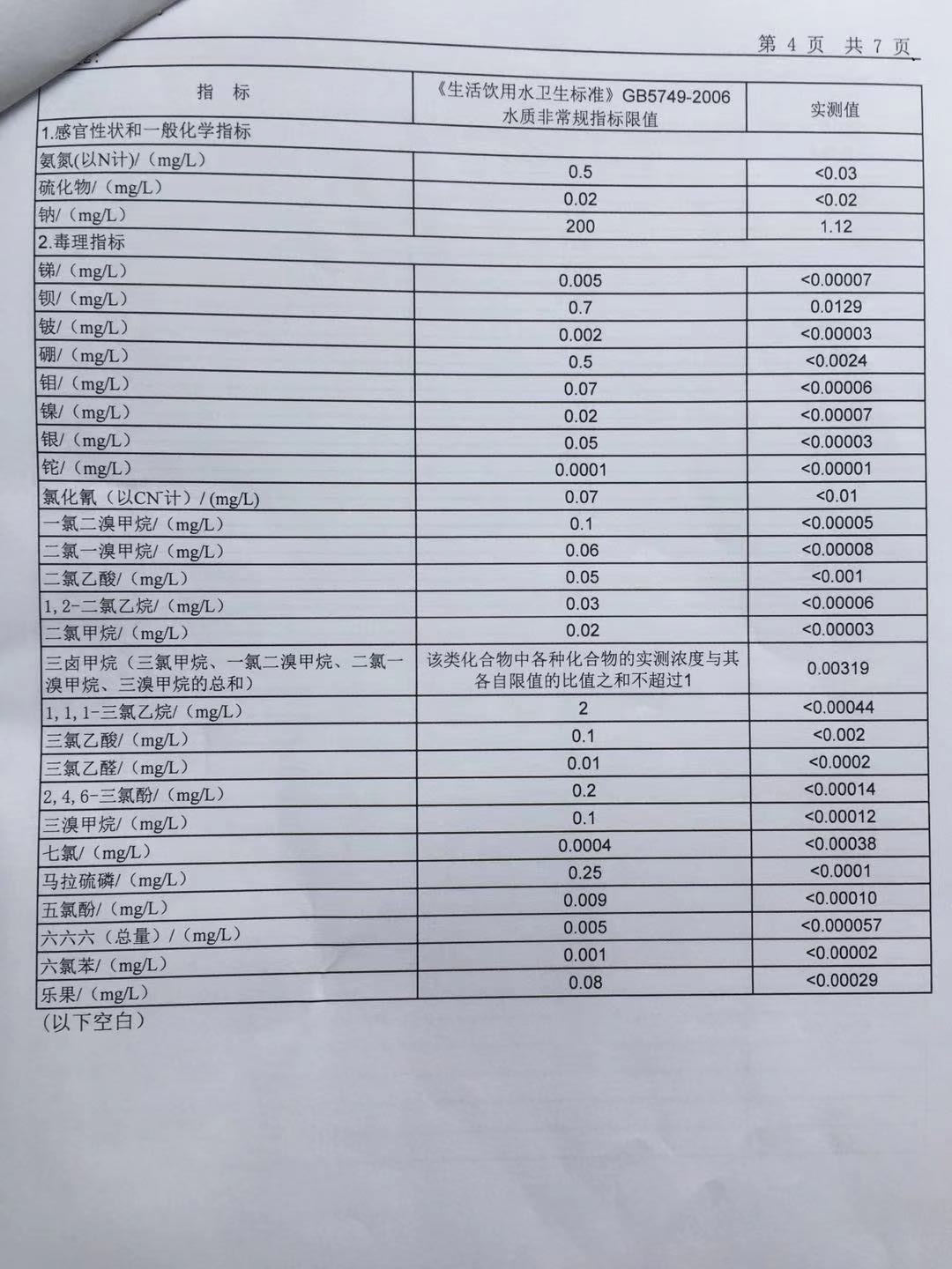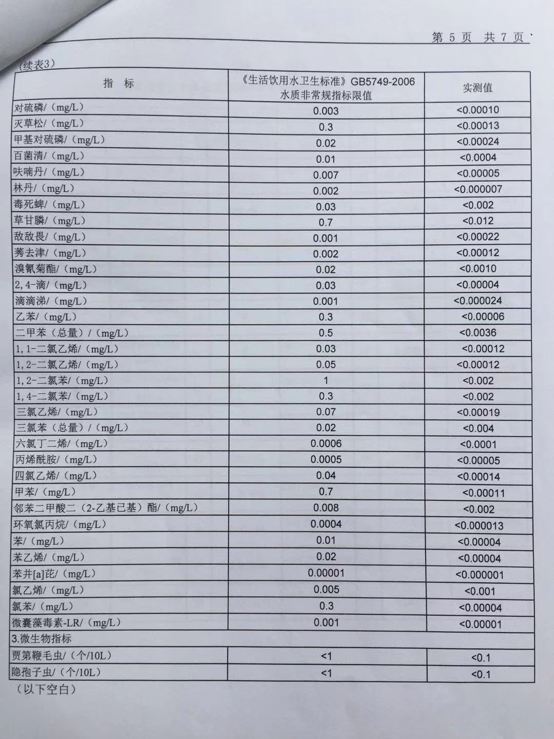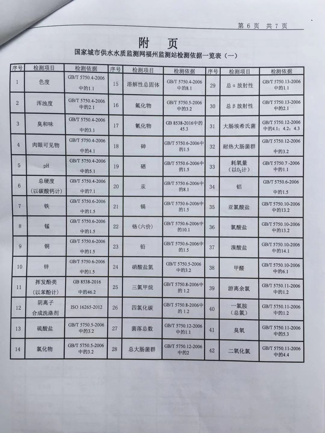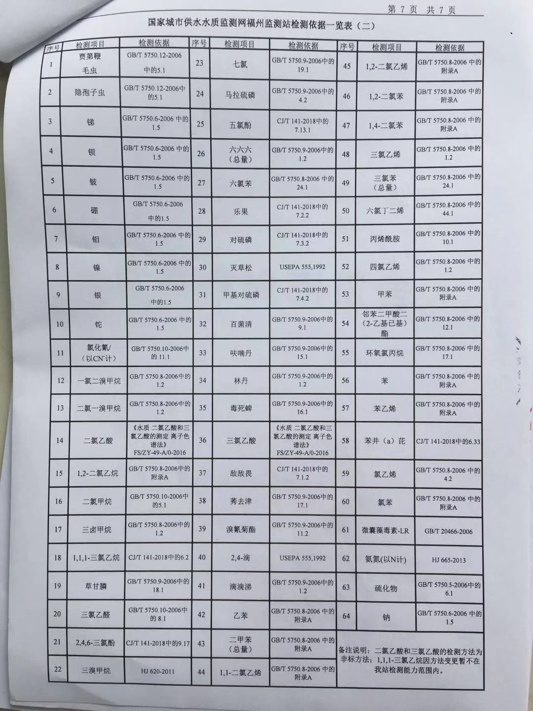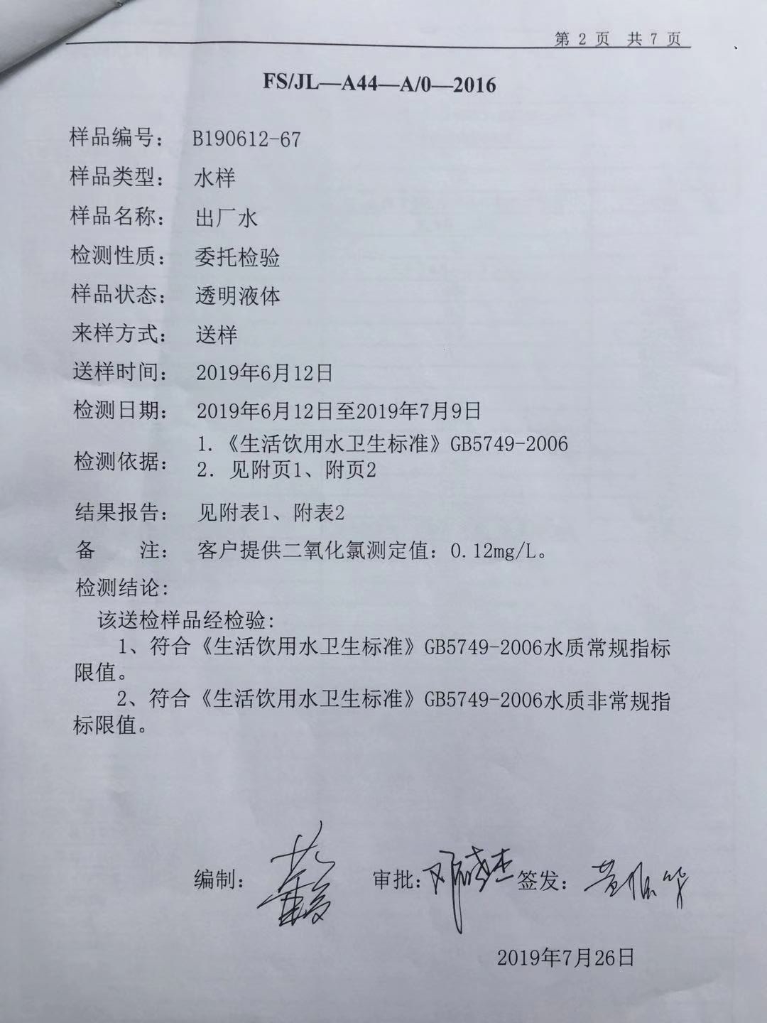 2019年6月份出厂水106项水质检测报告