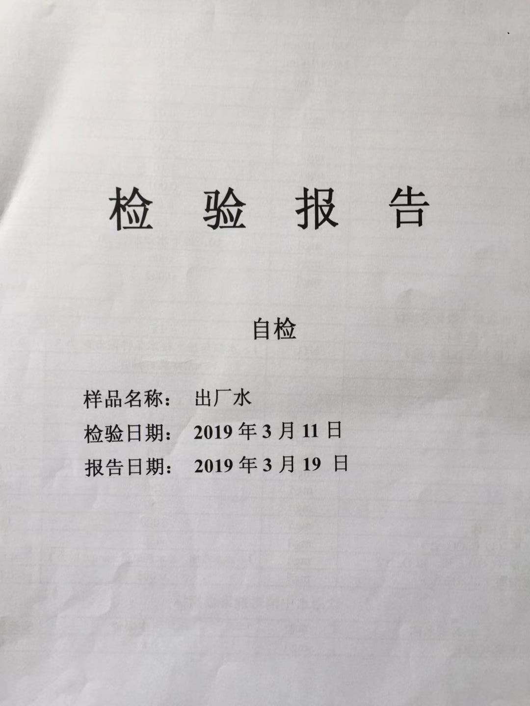 2019年3月份出厂水水质检测报告