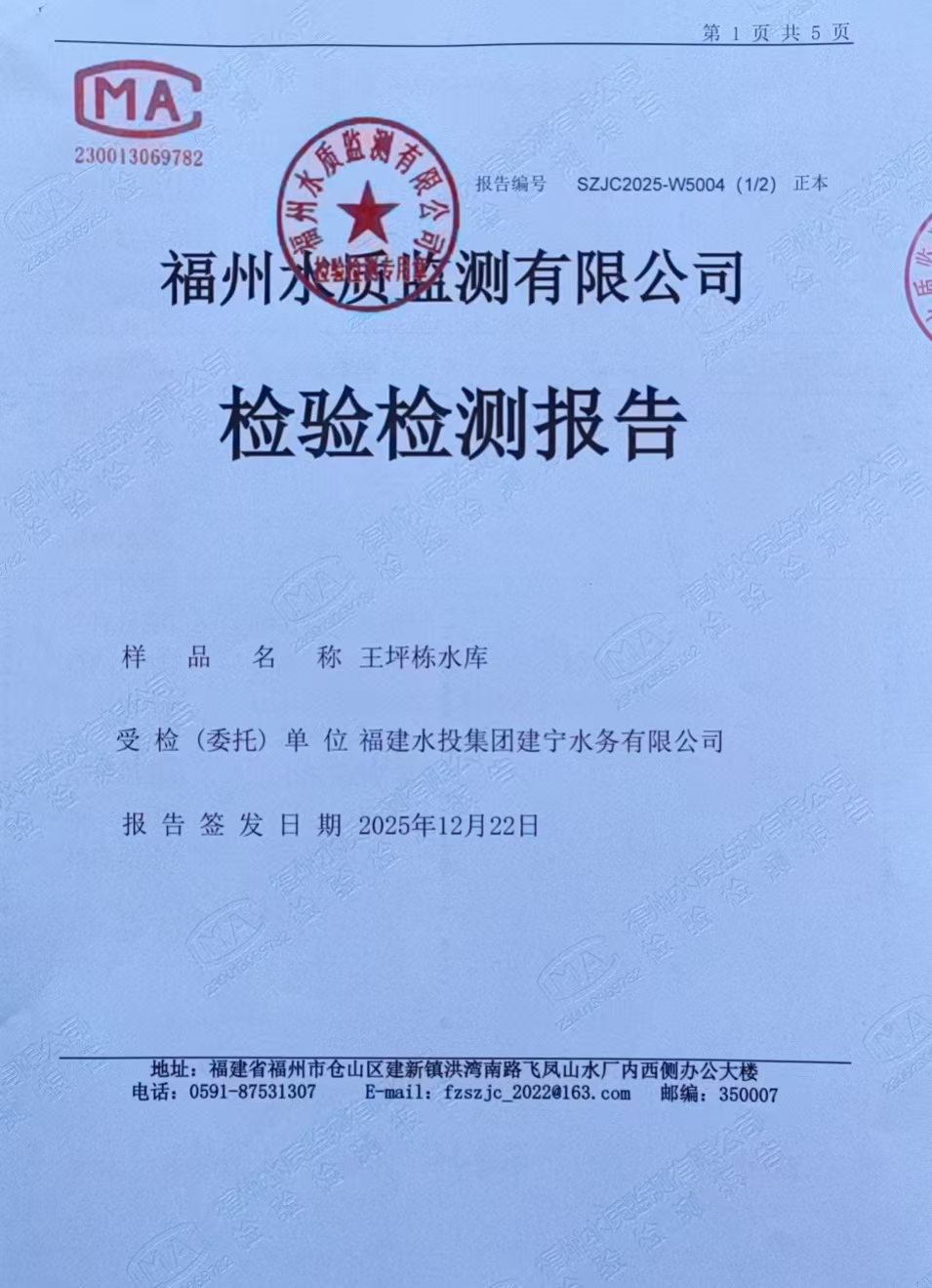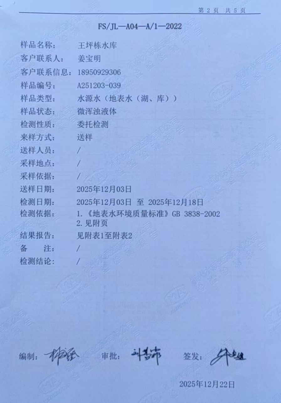 2025年12月份原水水质检测报告
