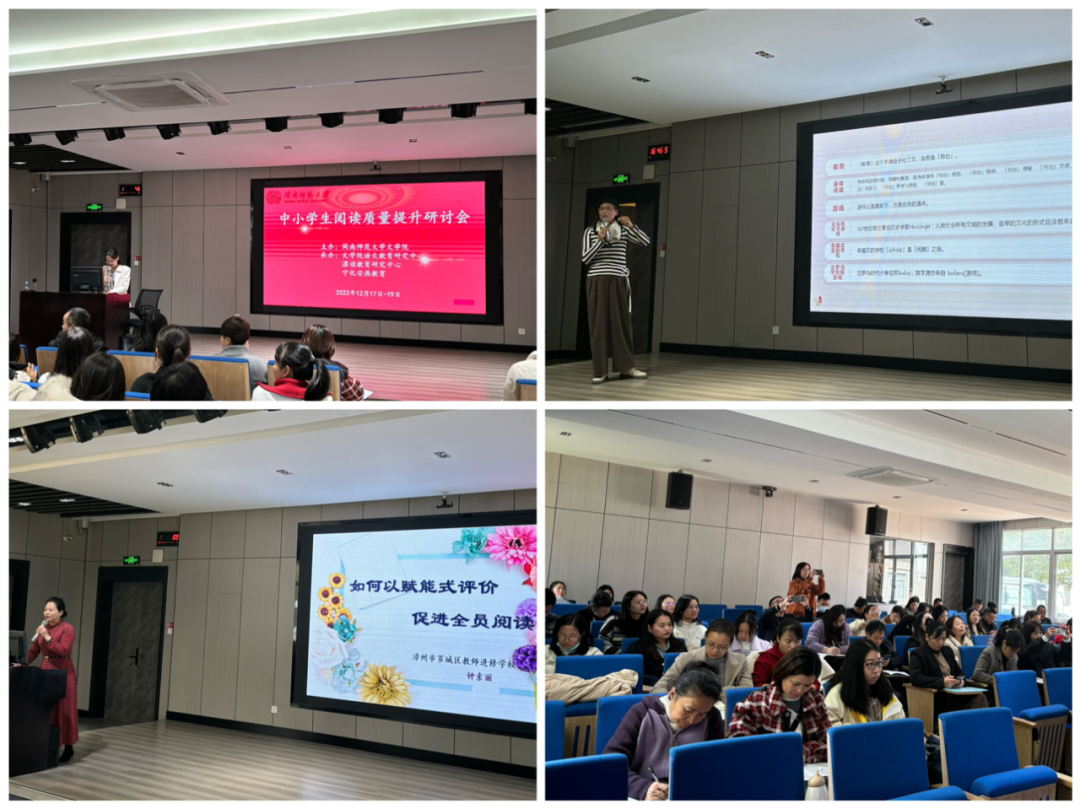 研训会上,闽南师范大学文学院院长黄金明做了题为《网络时代的阅读与写作》的讲座,教授代顺丽解读了《福建省“开明领读,悦读福建”阅读三年行动实施方案》,并做了题为《青少年文本阅读的整合式思维》的讲座,中国台湾省籍教授洪琼君做了题为《不一样的阅读—用身体来阅读》的讲座,芗城区教师进修学校副校长钟素丽做了题为《以赋能式评价促进全员阅读》的讲座。各位专家的讲座让与会教师对中小学生阅读教学有了更清晰的认识,让大家深切感悟到阅读教学的重要性,也使大家学习到许多新颖有效的阅读教学和评价方法,专业素养得到较大提升。