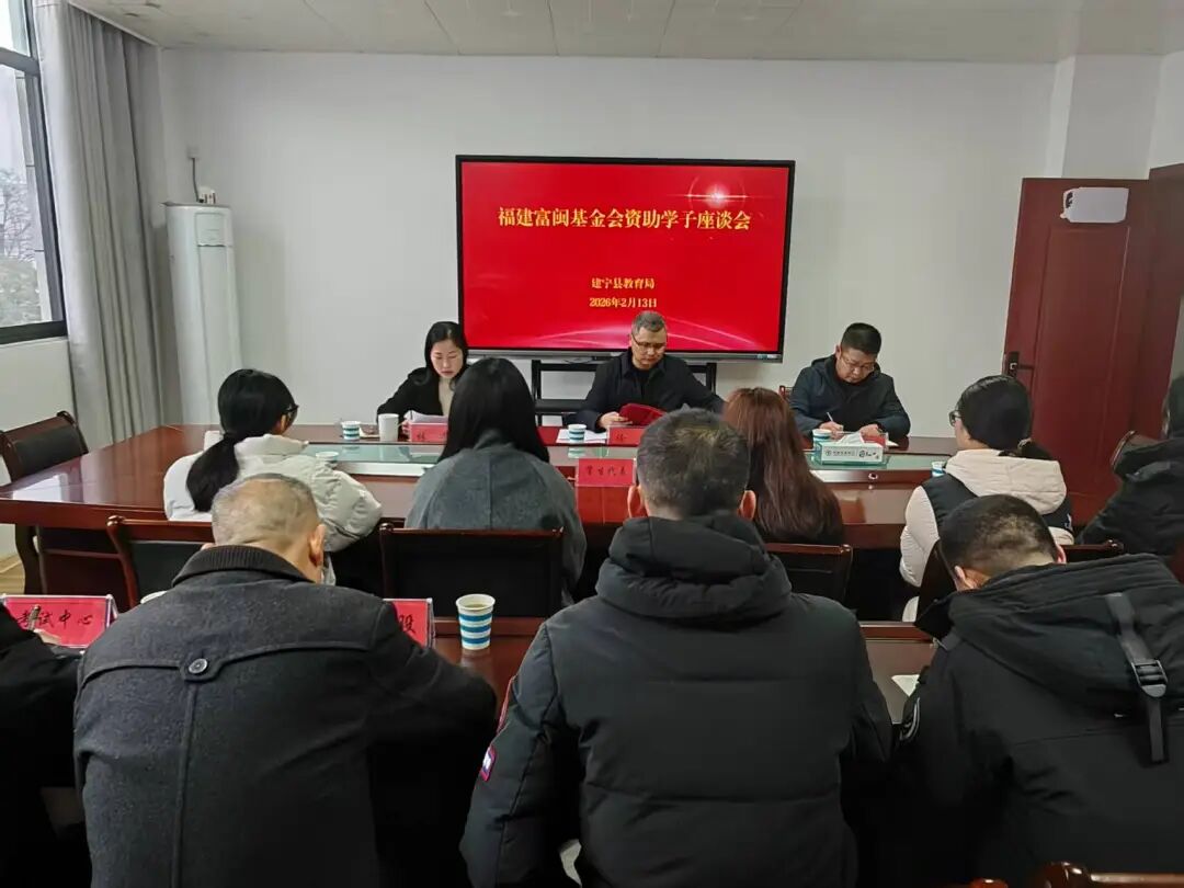 2月13日,建宁县教育局召开福建富闽基金会资助学子座谈会。