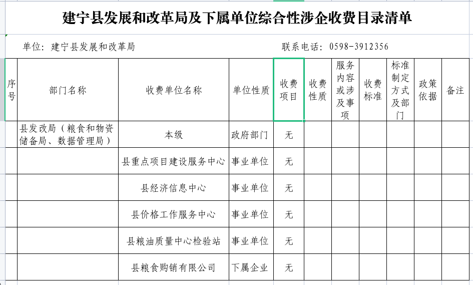 建宁县发展和改革局及下属单位综合性涉企收费目录清单