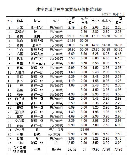 (8.15)建宁县城区民生重要商品价格监测表