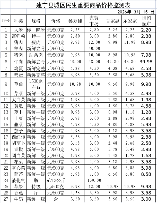 建宁县城区民生重要商品价格监测表