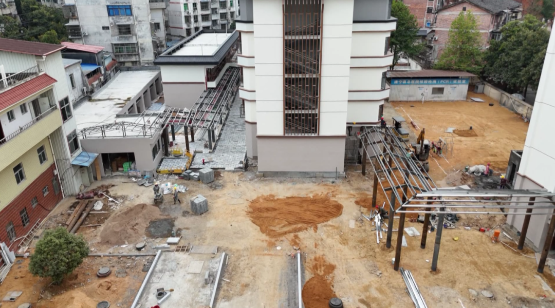 日前,在建宁县城区社区卫生服务医养结合中心项目施工现场,记者看到,工人们已完成内部装修工作,现在正进行室外的雨污水、强弱电管网铺设的收尾工作。