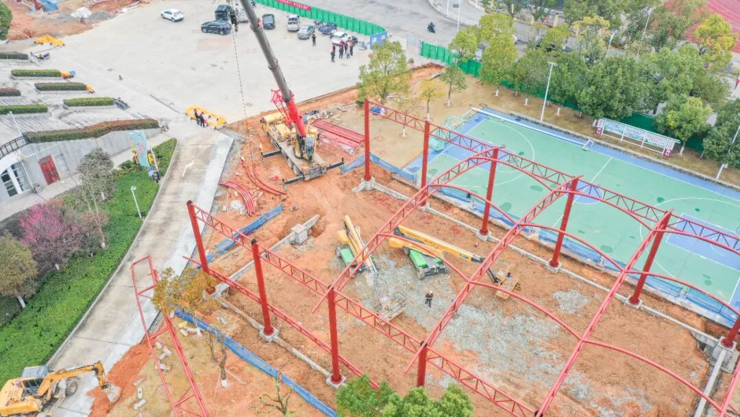 据了解,该项目总投资约3330万元,涵盖新建与改建两大板块。主要建设内容为新建全民健身篮球多功能馆、田径场看台屋顶,改建体育馆、全民健身馆、户外篮球场及体育馆内部道路,项目预计今年6月底全面完工。