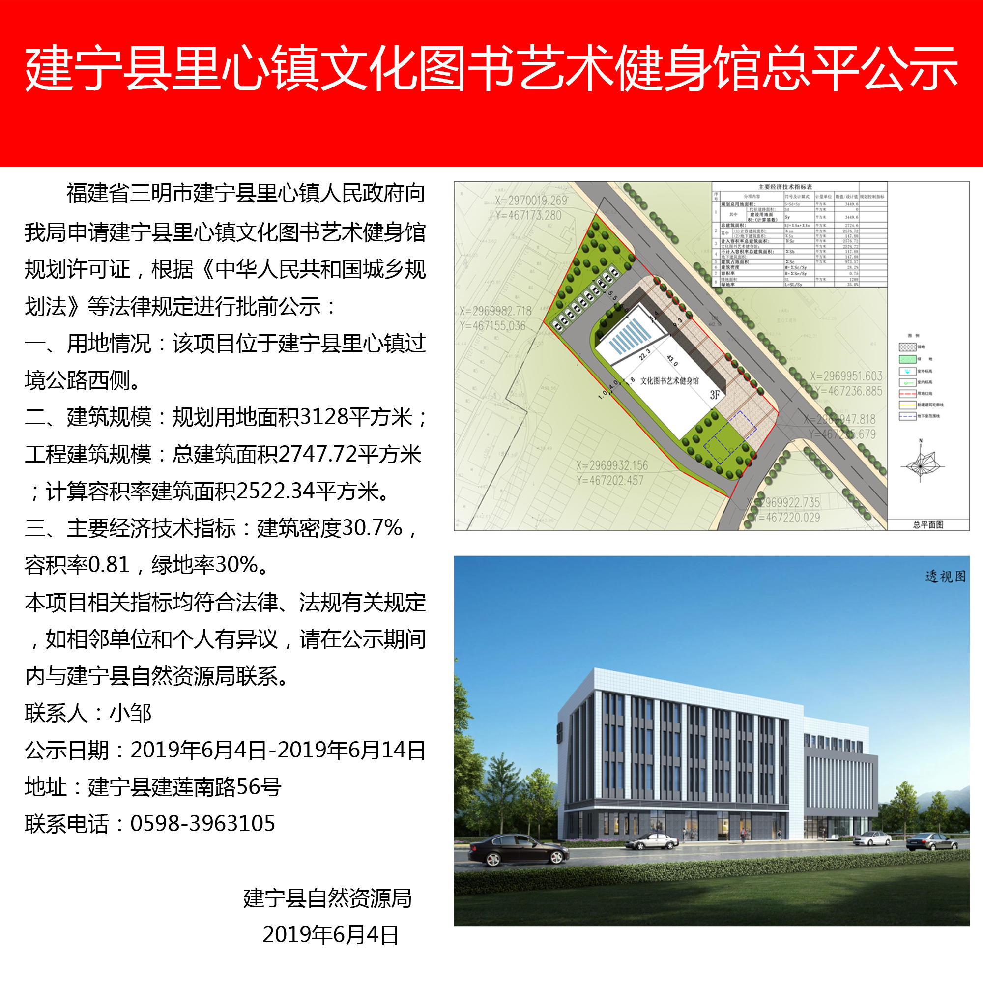 建宁县自然资源局关于建宁县里心镇文化图书艺术健身馆总平公示