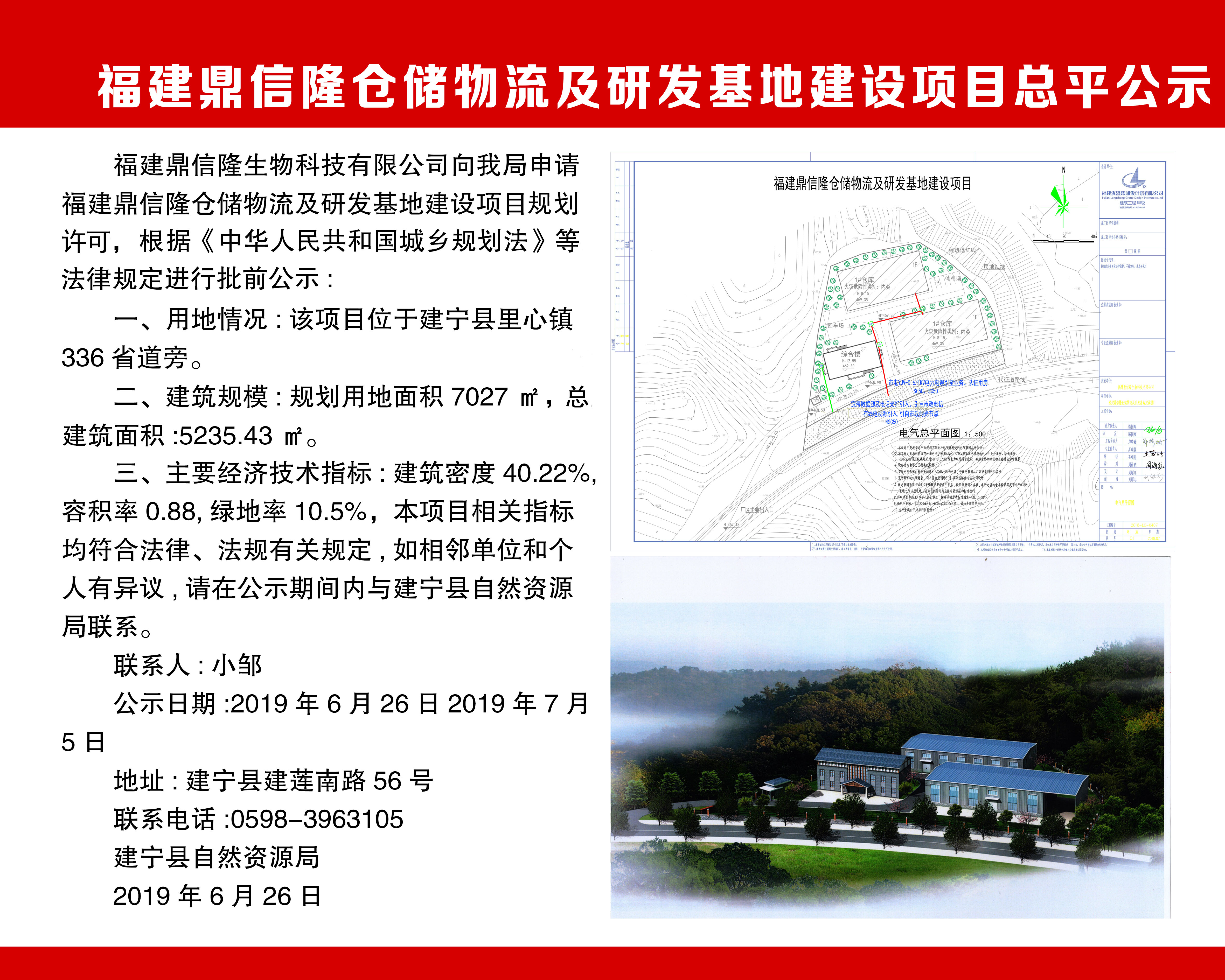 建宁县自然资源局关于福建鼎信隆仓储物流及研发基地建设项目总平公示