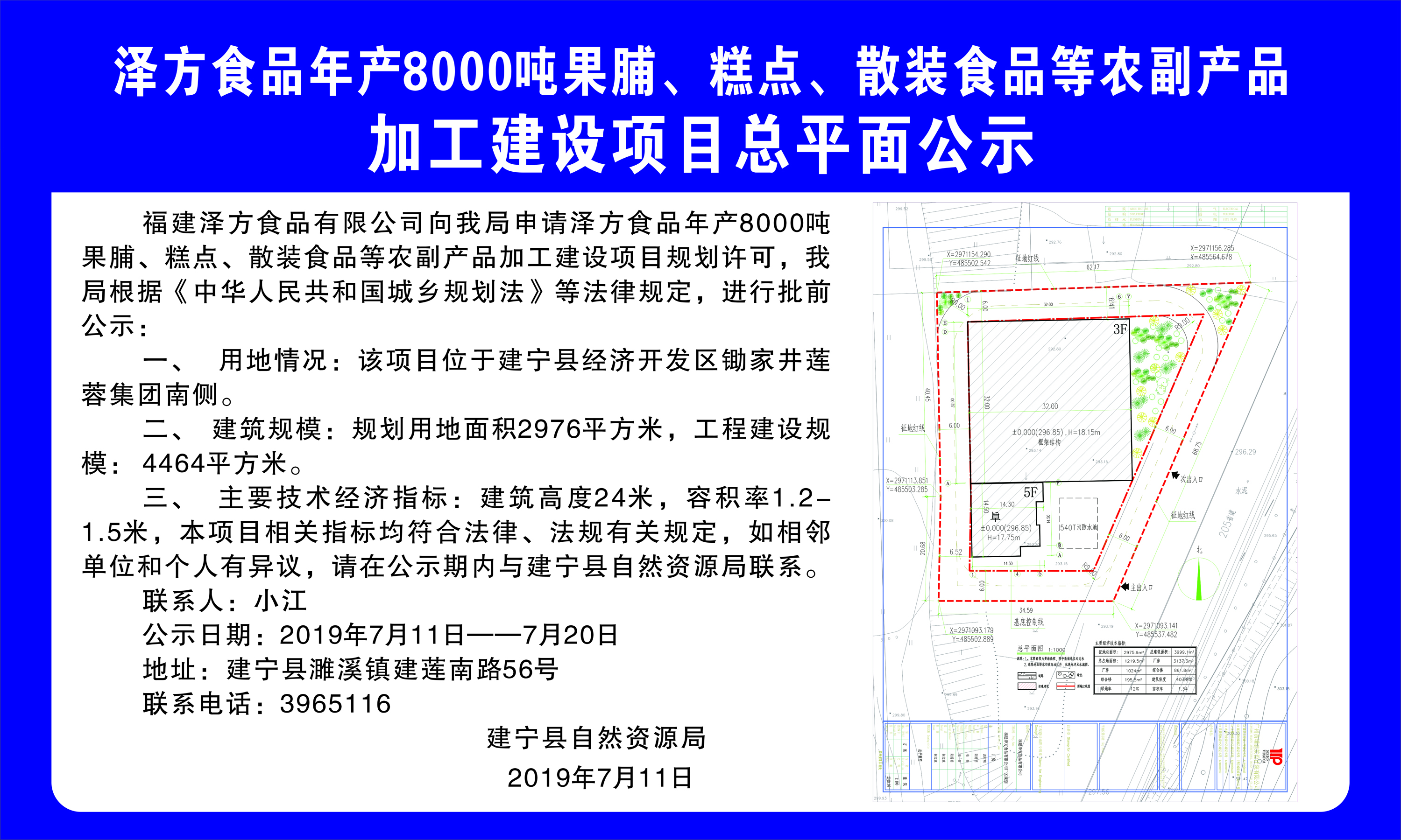 建宁县自然资源局关于泽方食品年产8000吨果脯、糕点、散装食品等农副产品加工建设项目总平面公示